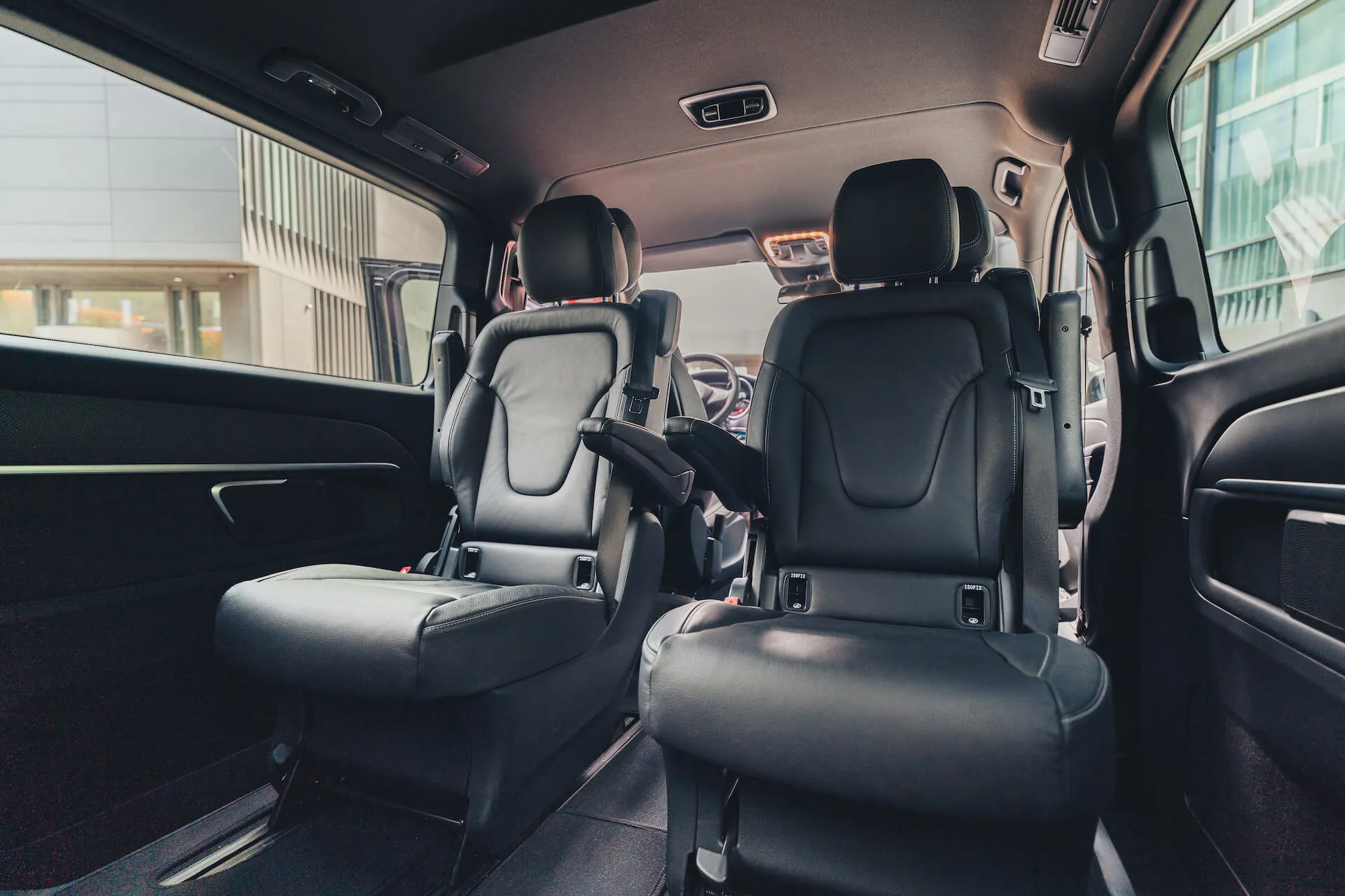 Für Reisen mit mehreren Gästen, Gepäck oder zum Shutteln ist diese Klasse ideal. Mit ausreichend Platz und Komfort erreichen Sie Ihr Ziel sicher, elegant und luxuriös in unseren Mercedes-Benz V-Klassen oder vergleichbaren Modellen. Hochwertige Lederausstattung im Innenraum bietet luxuriösen Platz für bis zu 6 Passagiere.